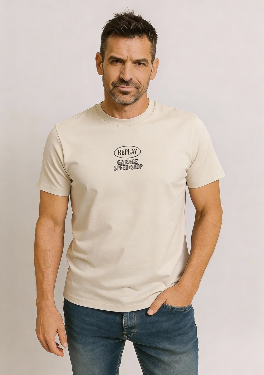 Eleva tu estilo urbano con la Camiseta Garage Replay, una prenda que captura la esencia del auténtico espíritu «custom». Confeccionada con la atención al detalle y la calidad premium propias de Replay, esta pieza en tono arena destaca por su versatilidad y diseño audaz.