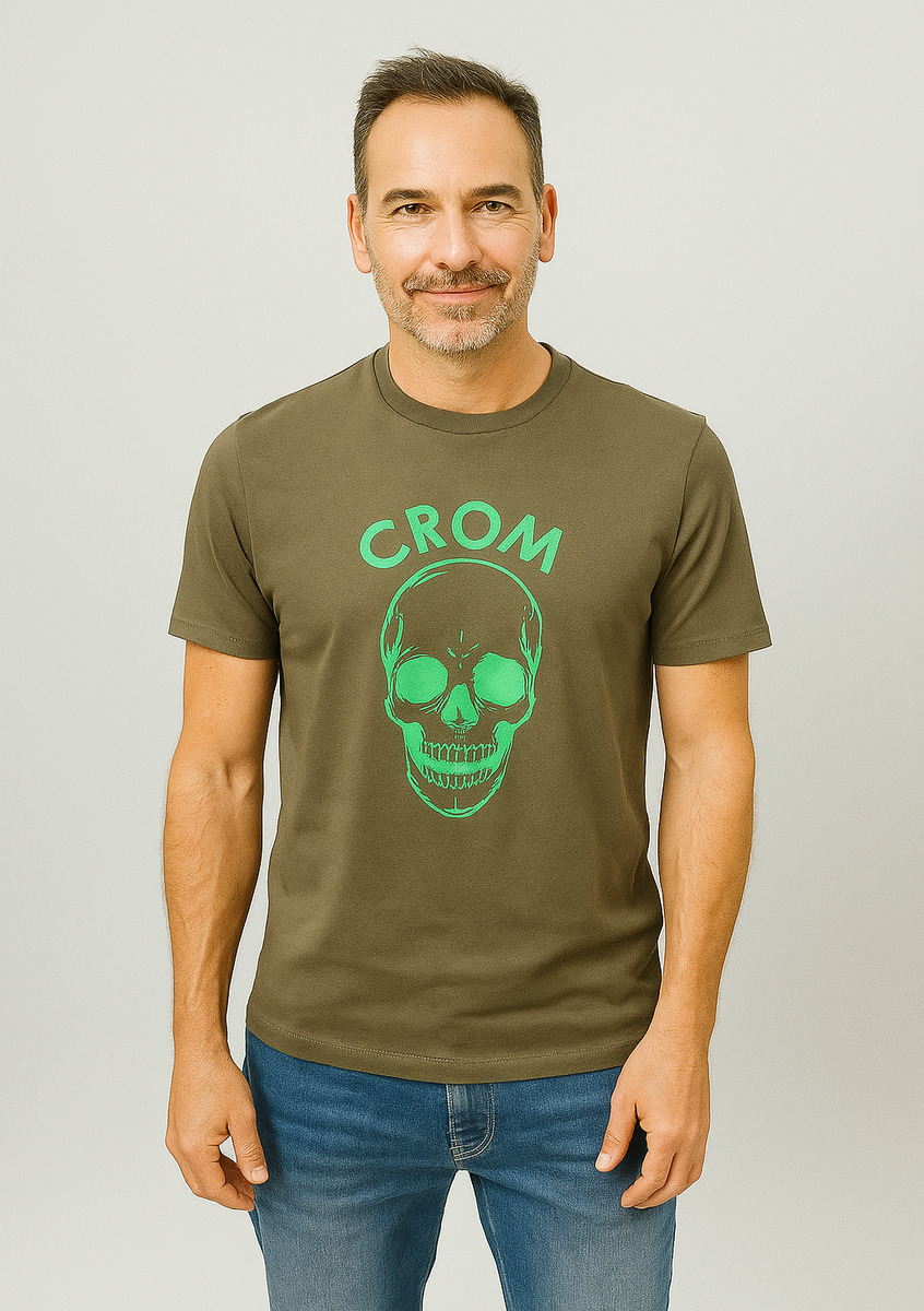 Dale un toque de rebeldía a tu estilo con la camiseta logo grande con calavera verde CROM. Su diseño moderno en color caqui con estampado fluor no pasa desapercibido y aporta personalidad a cualquier look. Ideal para los amantes de la moda casual de hombre, esta camiseta combina comodidad, calidad y un punto de atrevimiento. Fabricada en algodón suave y transpirable, es perfecta tanto para el día a día como para tus momentos de relax. Si buscas una camiseta original con carácter y estilo propio, la CROM Skull Verde será tu nueva favorita.