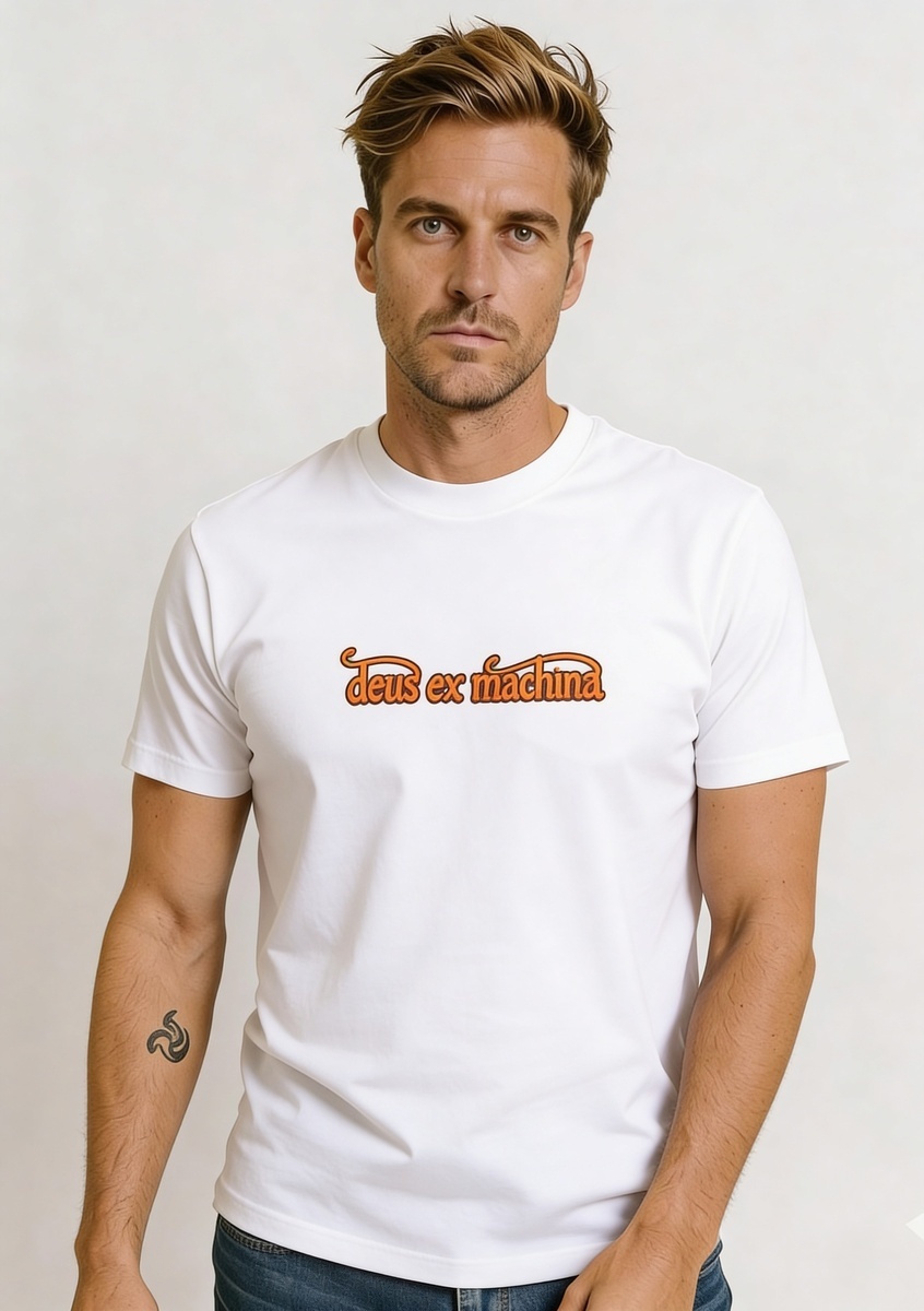 Explora el estilo psicodélico y rebelde con la Camiseta Virtual Insanity Deus, una prenda blanca que redefine el diseño gráfico clásico con una estética vibrante. En el frontal, destaca el icónico logo de Deus Ex Machina en una tipografía retro con llamativos tonos naranjas.
