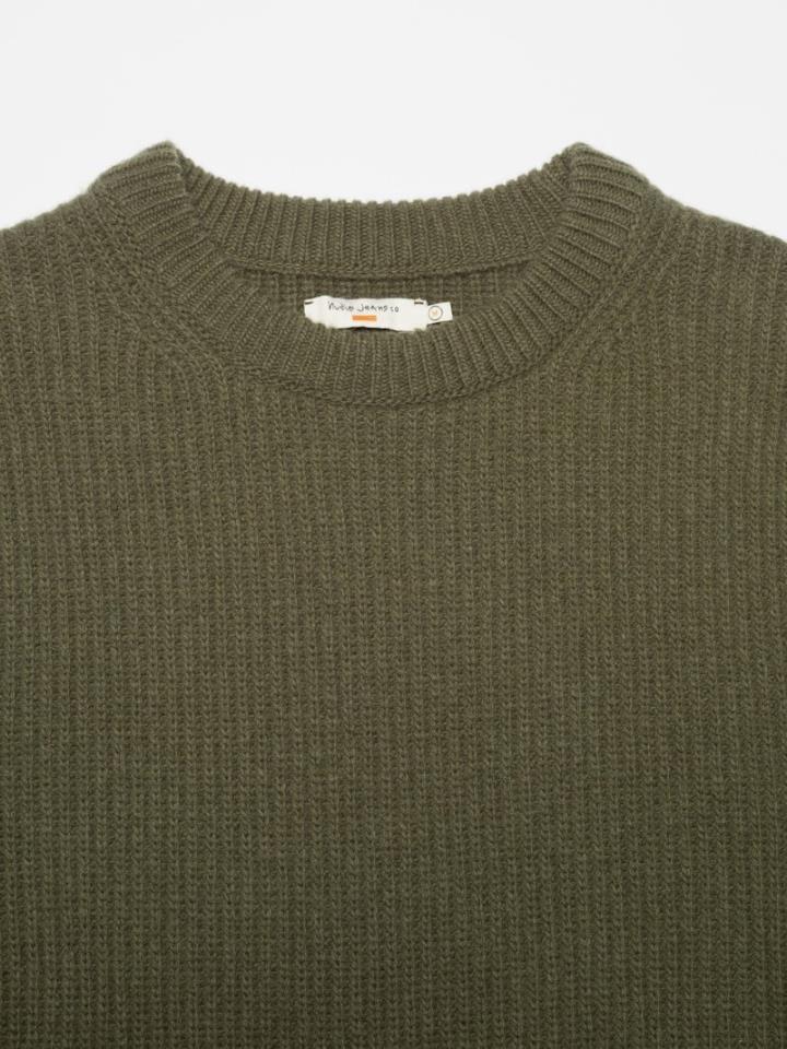Suéter de cuello redondo confeccionado con lana 100 % orgánica. La técnica de tejido se llama punto cardigan completo. Parece un canalé, pero da como resultado un punto más denso con galones más marcados. Este punto ofrece la combinación de calidez y ligereza característica de las prendas de lana. En resumen, ¡August es una verdadera joya!