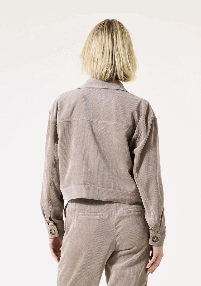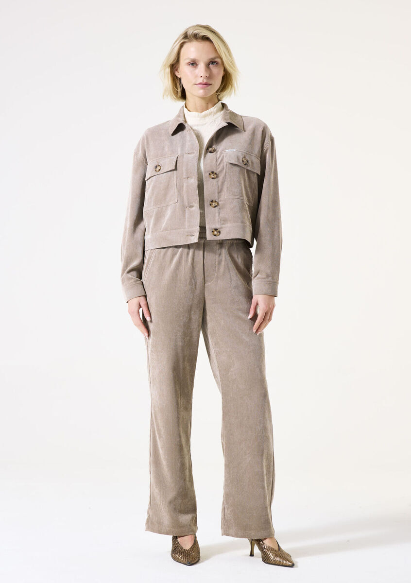 Elegante chaqueta de pana para un look moderno. Esta chaqueta cuenta con cuello, mangas largas y cierre de botones, con un corte holgado para una comodidad óptima. Está confeccionada con un 90 % de poliéster, un 8 % de poliamida y un 2 % de elastano.