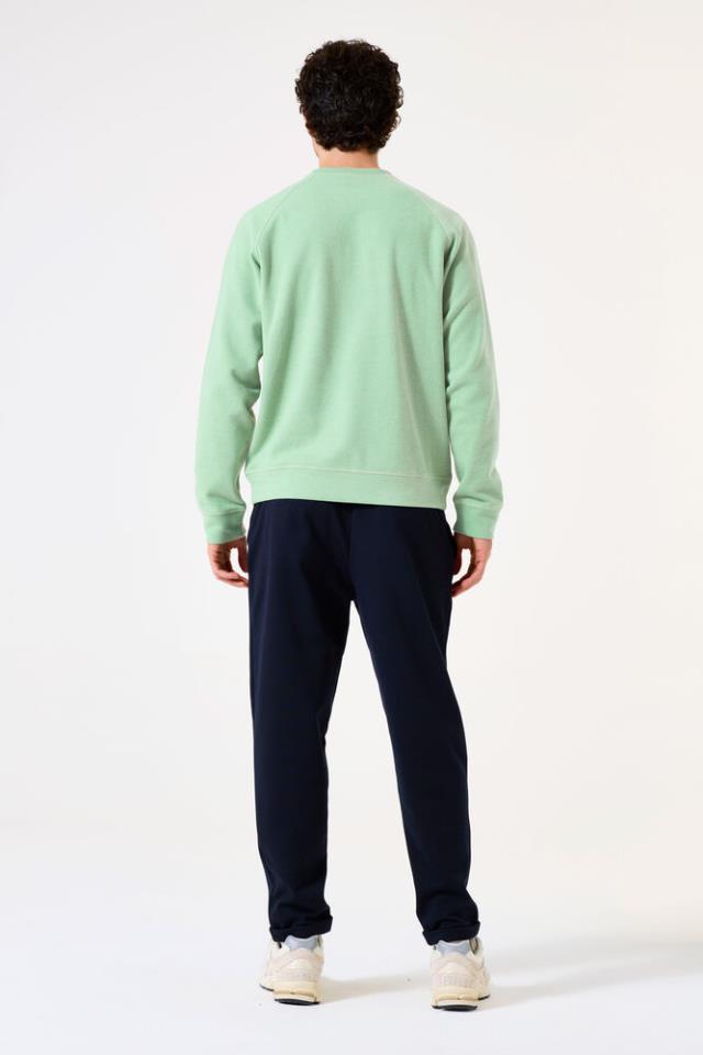 Suéter de canalé con un estilo moderno. Este suéter presenta cuello redondo, mangas largas y corte clásico. Está confeccionado con un 50 % de algodón y un 50 % de poliéster reciclado, lo que proporciona un tejido cómodo y trans