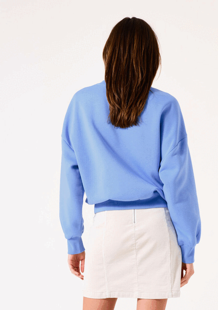 Suéter cómodo con un llamativo estampado. Este suéter tiene cuello redondo, mangas largas y corte clásico. Está confeccionado con un 45 % de algodón, un 30 % de poliéster y un 25 % de algodón reciclado.