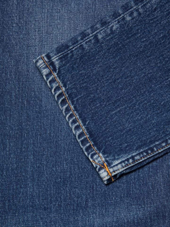 Vaqueros slim fit con pernera estrecha en un lavado azul oscuro con un auténtico efecto desgastado. Confeccionados en denim elástico de textura excepcional, el lavado desprende un rico carácter flameado, con vetas salpimentadas y un sutil rayado. Los detalles en relieve y las ligeras abrasiones cálidas añaden un auténtico aspecto desgastado a estas bellezas azul oscuro.